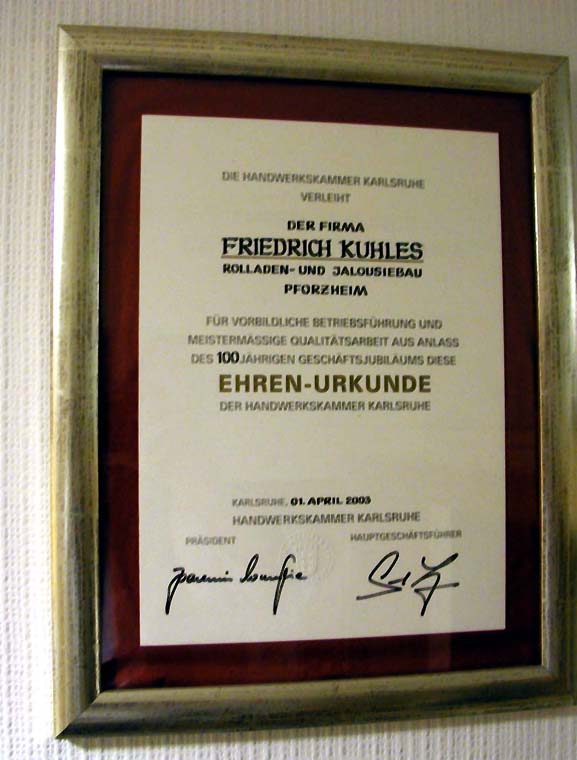 Mitglied der Rollladen- und Jalousiebauer-Innung Baden (Friedrich Kuhles