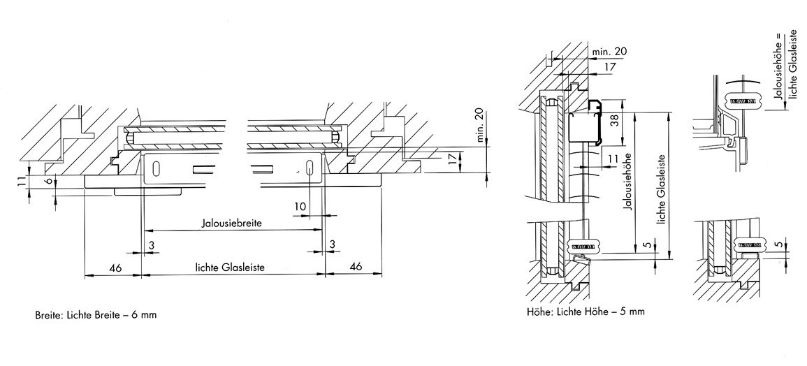 Glasfalz - Jalousie; Einbau im Glasfalz / Perlkette / Bedienung neben dem Lamellenbereich / sehr elegante Lösung / Neuentwicklung für gehobene Ansprüche / verdeckte Montage / Seitenführung für Kippfenster / Oberkopf farblich passend lackiert. |