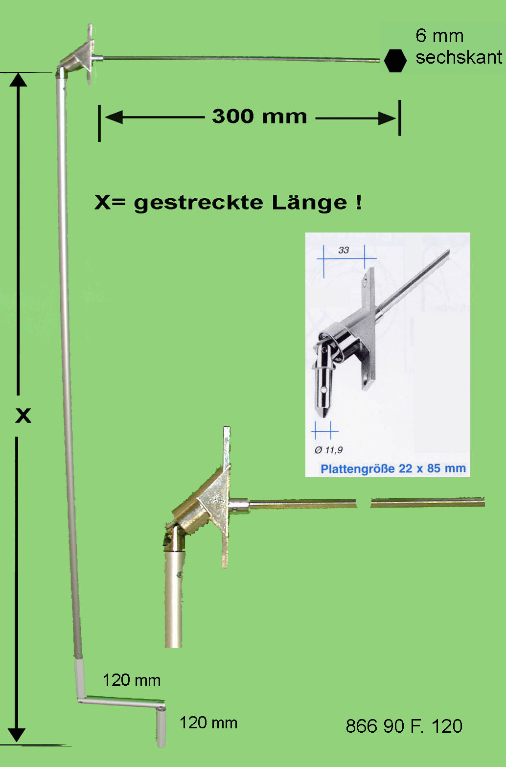 Markisen-Kurbelstange Kurbelstange (Stahl) mit Haken (alte